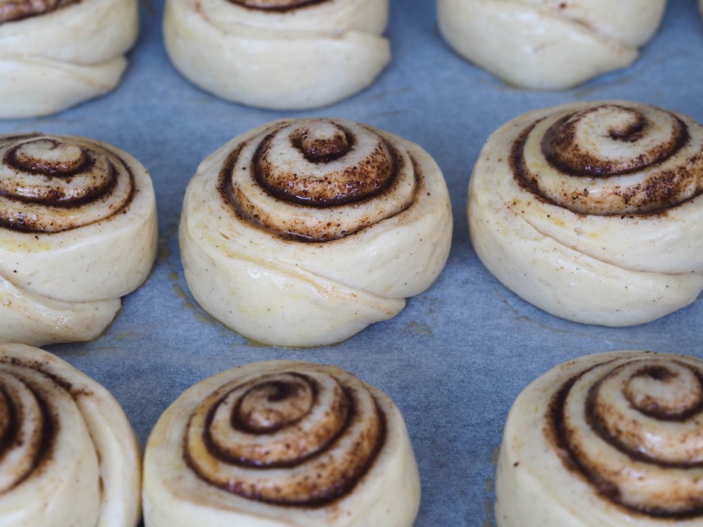 Kanelbollene kan fryses (før man har på melisglasuren).